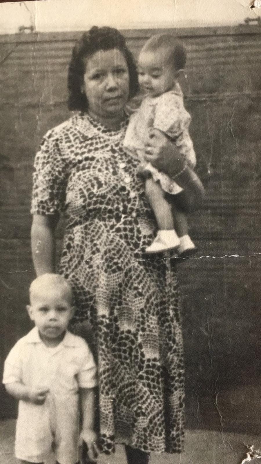 Kanga is surrounded by 7 of her 11 grandchildren. My grandfather is not present in this image